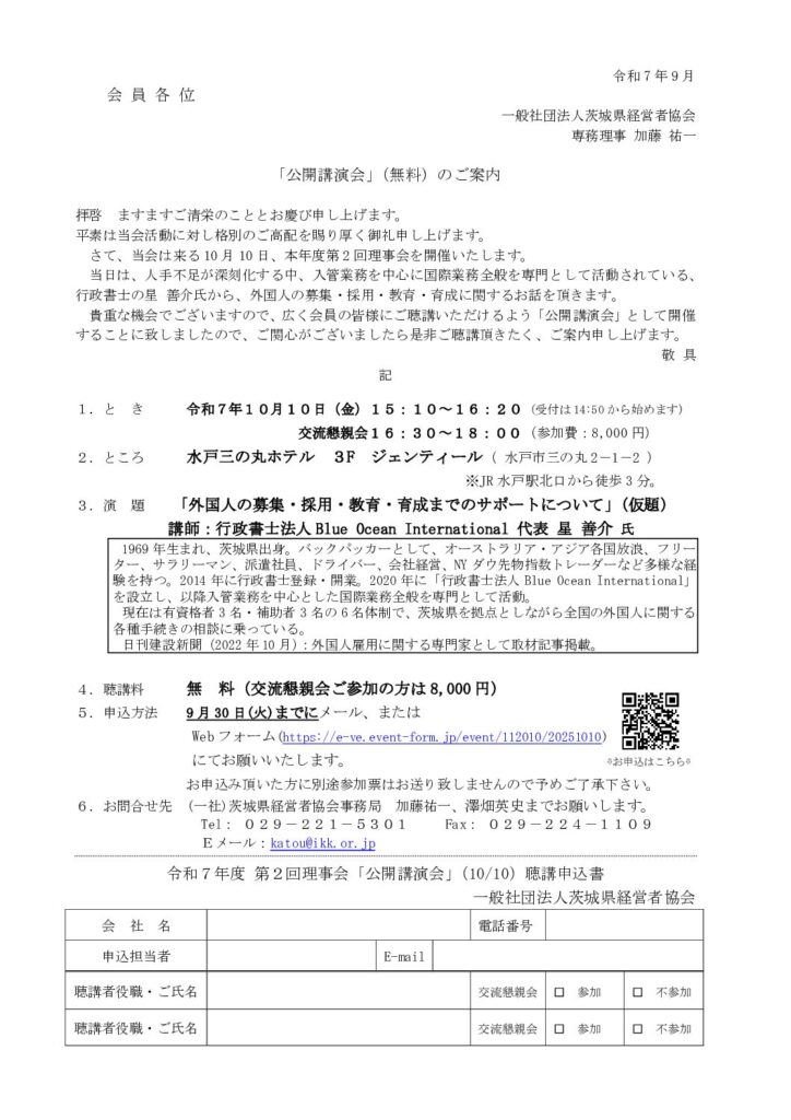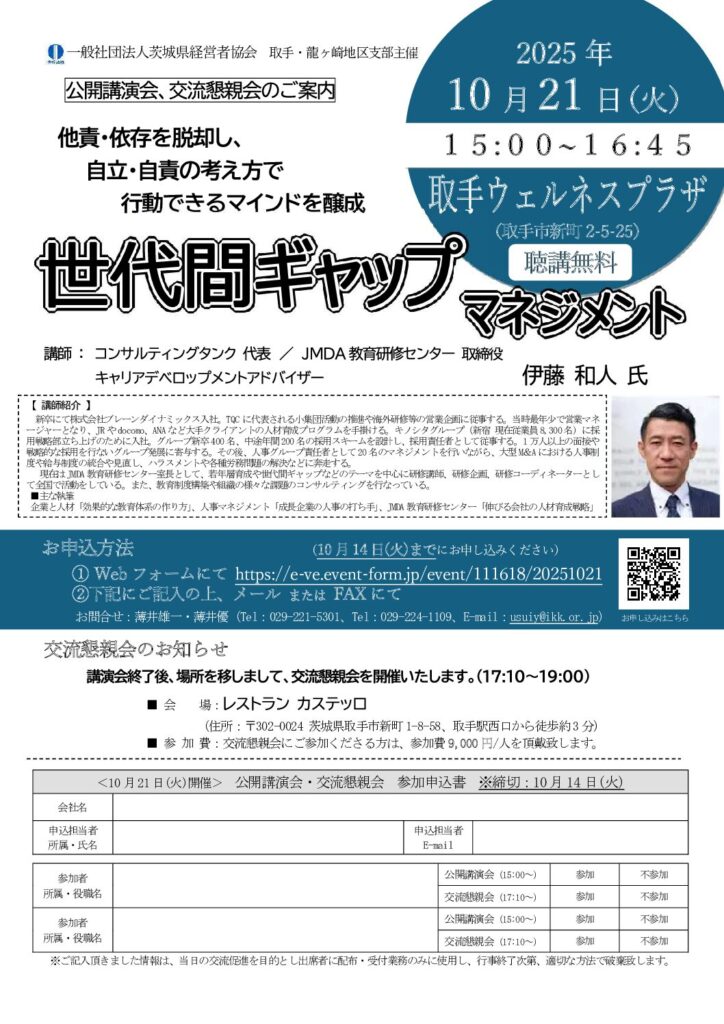 「県北・日立支部合同特別講演会・交流会 人が惹かれ、人が活躍する魅力ある会社のつくり方」のご案内