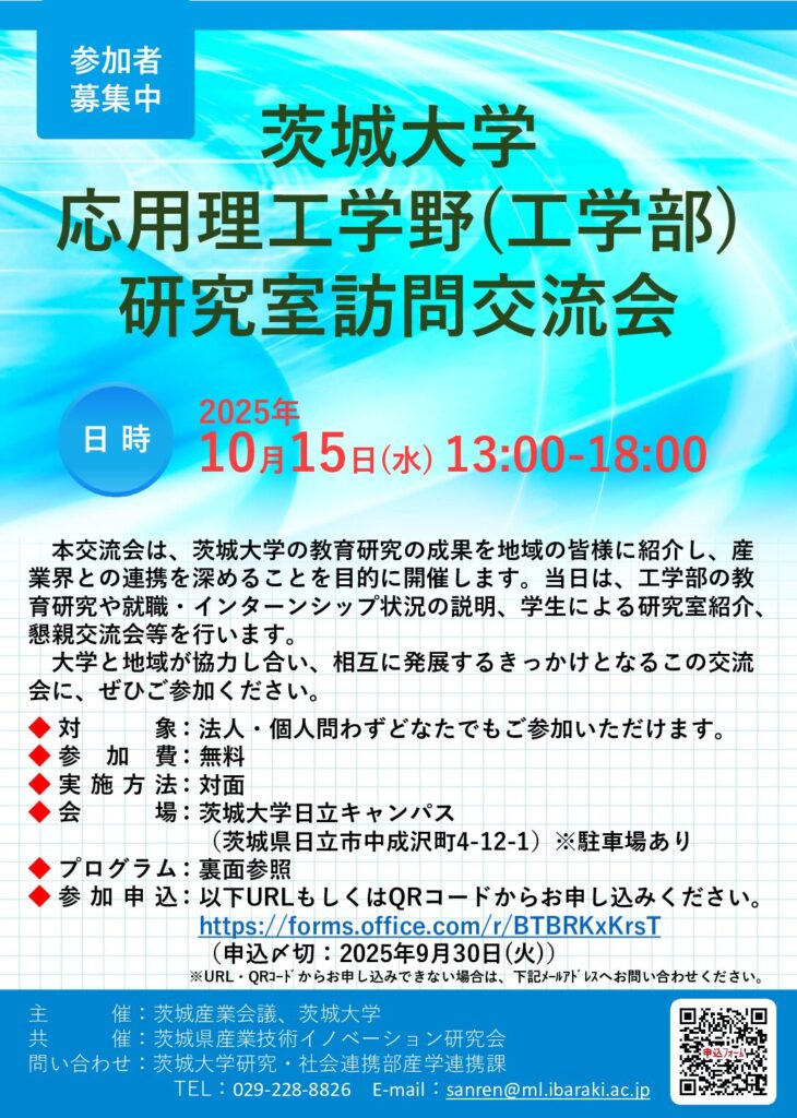 「茨城大学 応用理工学野(工学部)研究室訪問交流会」のご案内