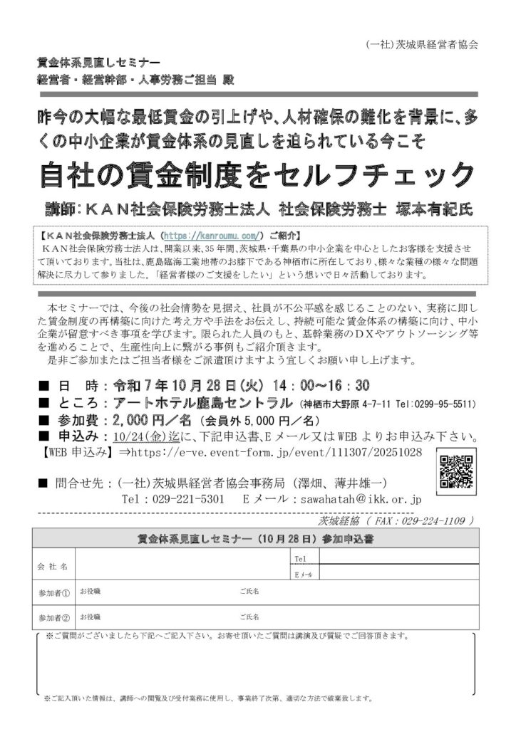 「賃金体系見直しセミナー 自社の賃金制度をセルフチェック」のご案内