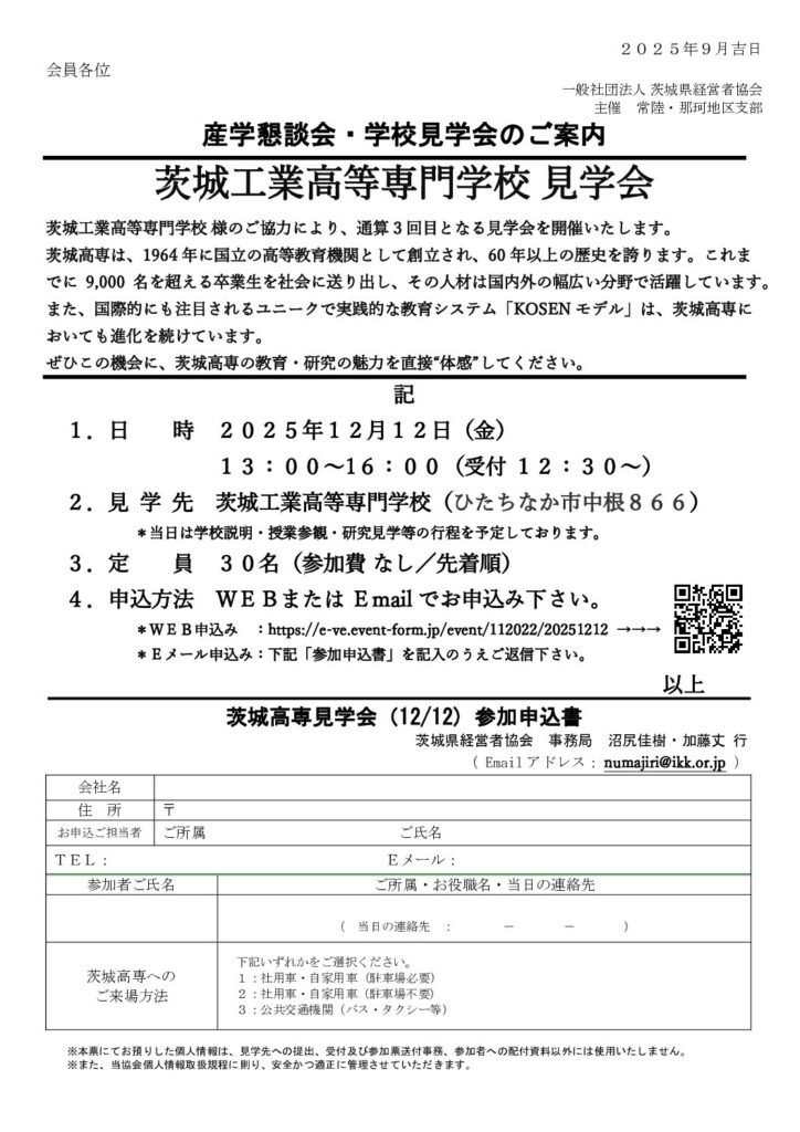 「茨城工業高等専門学校 見学会」のご案内