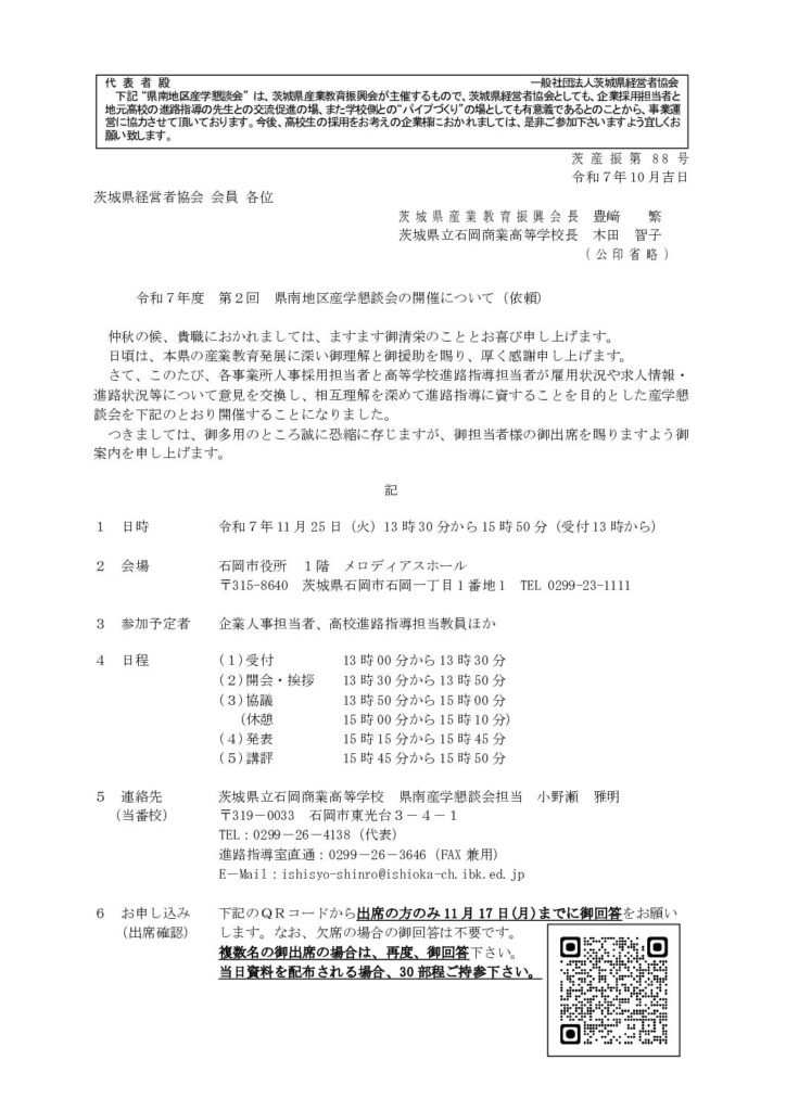 「令和7年度 第2回県南地区産学懇談会」のご案内
