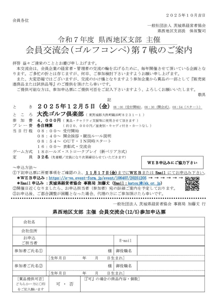 「令和7年度 第7回 会員交流会(チャリティゴルフコンペ 於:大洗ゴルフ倶楽部)」のご案内