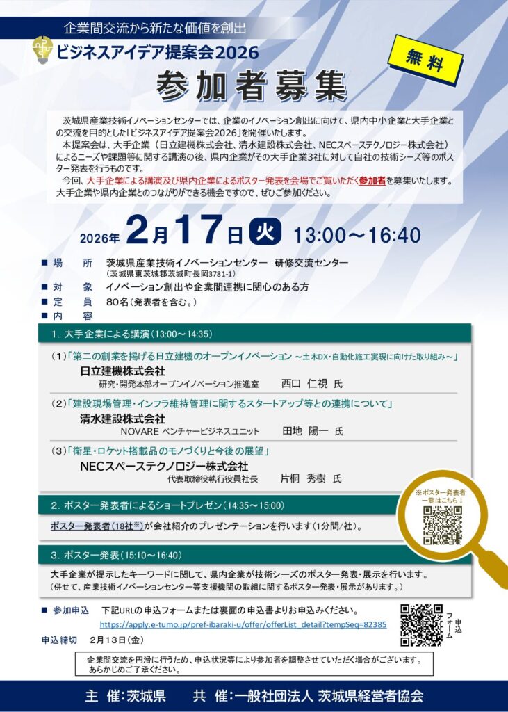 「企業間交流から新たな価値を創出 ビジネスアイデア提案会2026」のご案内
