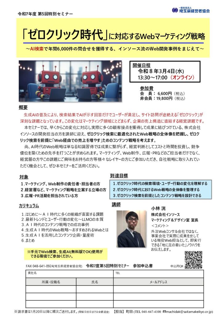 「“ゼロクリック”時代に対応するWebマーケティング戦略 ~AI検索で年間6,000件の問合せを獲得する、インソース流のWeb開発事例を交えて」のご案内