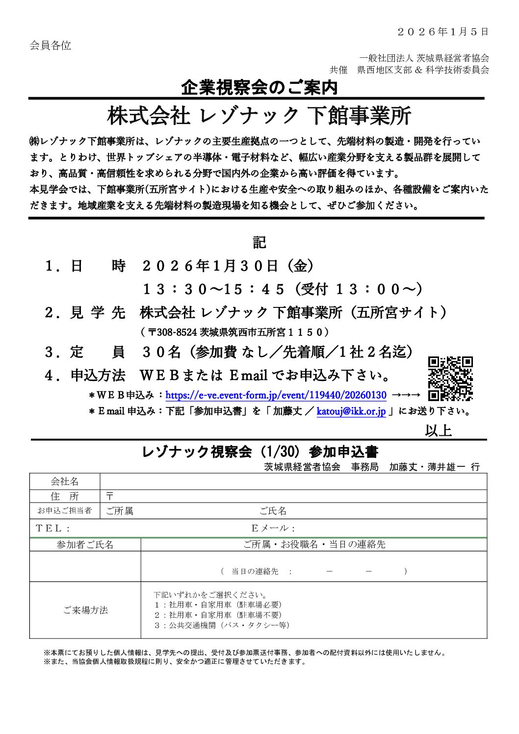 レゾナック下館事業所は、レゾナックの主要生産拠点の一つとして、先端材料の製造・開発を行っており、世界トップシェアの半導体・電子材料など、幅広い産業分野を支える製品群を展開し、高品質・高信頼性を求められる分野で国内外の企業から高い評価を得ています。本見学会では、下館事業所(五所宮サイト)における生産や安全への取り組みのほか、各種設備をご案内頂くとともに、地域産業を支える先端材料の製造現場を知る機会としてご活用下さい。 | 筑西市五所宮1150 |
