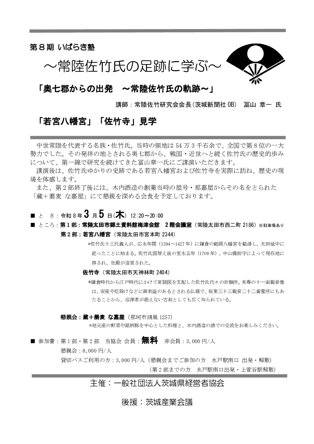 「第8期いばらき塾 ~常陸佐竹氏の足跡に学ぶ “奥七郡からの出発” 常陸佐竹氏の軌跡~」」のご案内